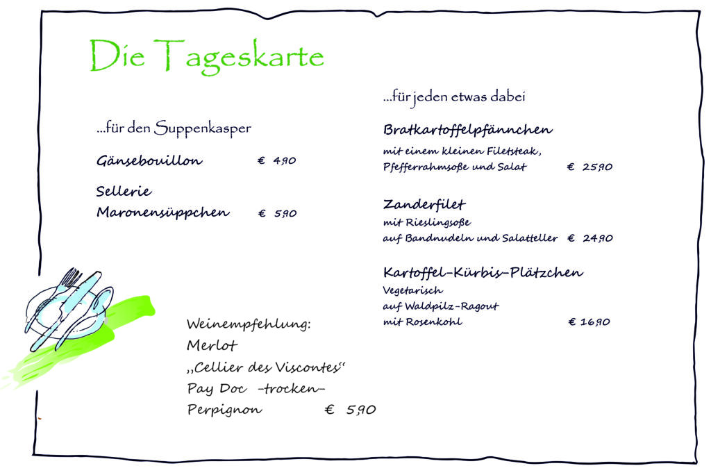 Aktuelle Tageskarte Veröffentlicht am Januar 8, 2026Januar 23, 2026 von Bettina Dingeldein Ab Mittwoch, den 28. Januar: