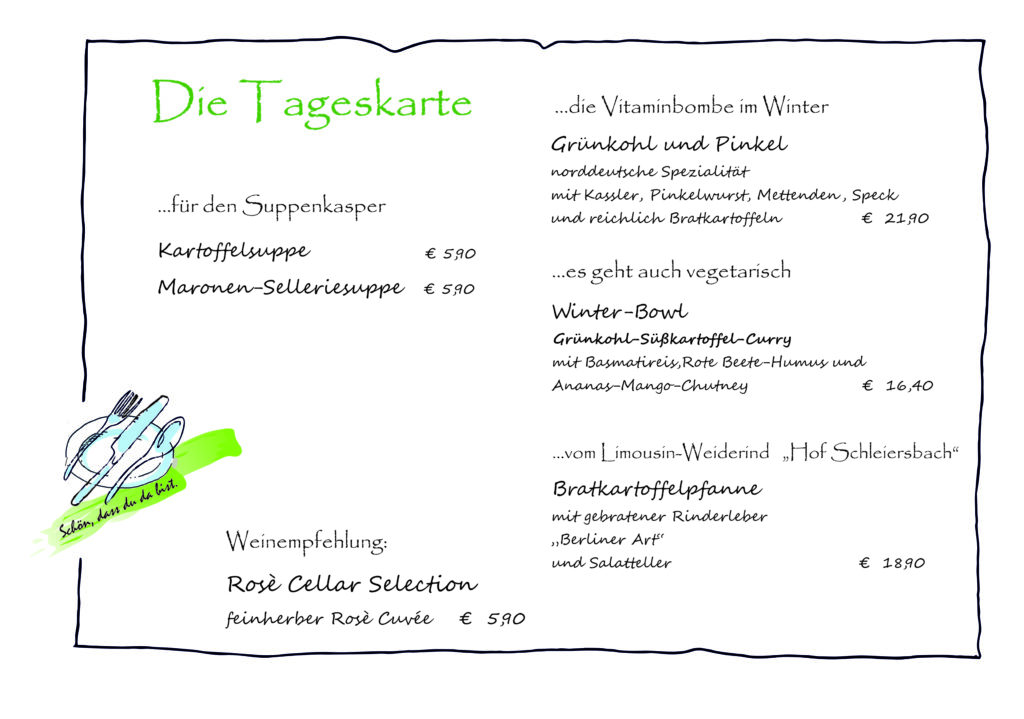 Grünkohl ab Mittwoch, den 28. Januar Veröffentlicht am Januar 23, 2026 von Bettina Dingeldein Die Vitaminbombe im Winter -mit deftigen und vegetarischen Highlights.
