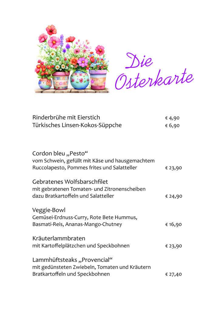Ostern in der Linde Veröffentlicht am März 25, 2026März 25, 2026 von Bettina Dingeldein Darauf können Sie sich freuen: